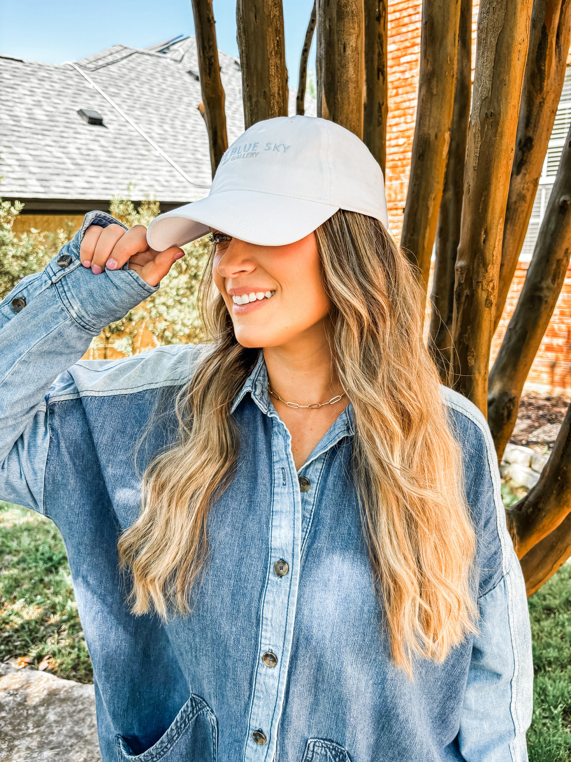 This adjustable dad hat offers a simple design featuring our Pale Blue Sky Art Gallery logo.